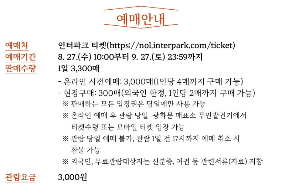 - 당일 외국인 현장 판매: 외국인은 광화문에서 당일 티켓 구매 가능 (한정 판매)